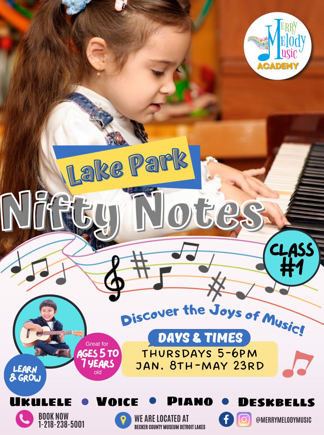 Welcome to the Merry Melody Music Academy’s Headquarters and Music Store located in Lake Park, Minnesota.Our office hours: 1pm-7pm Monday-ThursdaysWinter Session Dates: January 5th - May 16th REGISTER REGISTER REGISTER REGISTER REQUEST A PRIVATE LESSON REQUEST A PIANO LESSON REQUEST A PRIVATE COACHING REGISTER REGISTER REGISTER Additional class and lesson opportunities at our Detroit Lakes locations. CHECK OUT THE DETROIT LAKES LOCATION